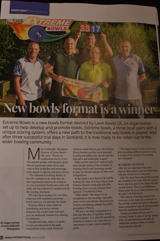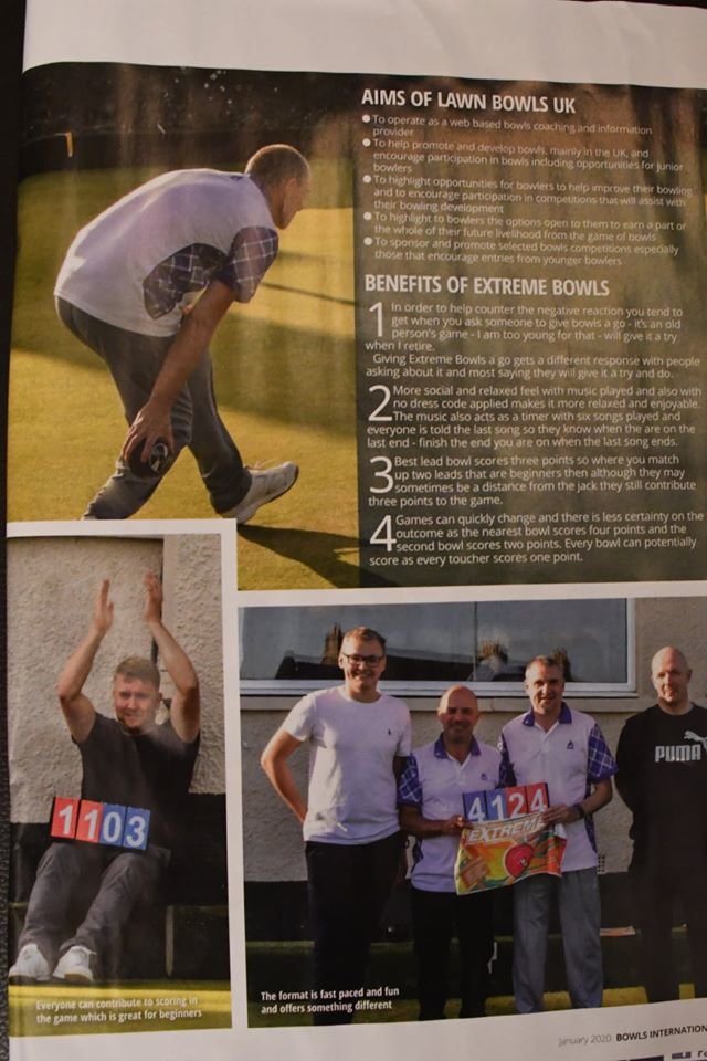 The January issue of Bowls International includes a feature on Extreme Bowls which was played at Rosslyn Bowling Club and Scotscraig Bowling Club during 2019. We look forward to playing Extreme Bowls and these two clubs again in 2020 and assisting other clubs that would like to give it a go. The article contains an explanation of the game and there are also videos at here.